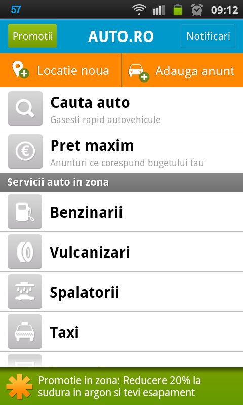 Sa o luam pas cu pas. Primul lucru pe care eu l-am observat cat am deschis noua aplicatie a fost sectiunea de promotii. Asta inseamna ca pe baza locului in care ne aflam, aplicatia ne poate sugera eventualele promotii din zona, pentru servicii cum ar fi spalatorii auto, statii ITP, schimburi de anvelope, etc.