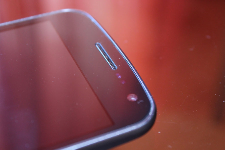 Pentru ca s-a renuntat la butoanele capacitive in favoarea unora software, ele trebuiau sa incapa undeva in ecran fara sa afecteze restul sistemului de operare. Astfel, rezulta un ecran care are intr-adevar diagonala de 4.65 inchi, insa latimea sa nu e atat de mare precum am putea crede la prima vedere.