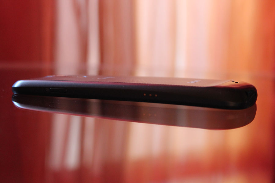 Si daca tot vorbim de suprafata telefonului. Speram ca grosimea redusa a telefonului sa compenseze pentru latimea lui si sa poata fi folosit relativ lejer cu o singura mana. Din fericire, asa a fost. E adevarat ca cei 4.65 inci nu sunt masurati tocmai la fel ca la alte telefoane. Lipsa butoanelor fac ecranul sa fie mai lung (implicit mai usor de folosit).