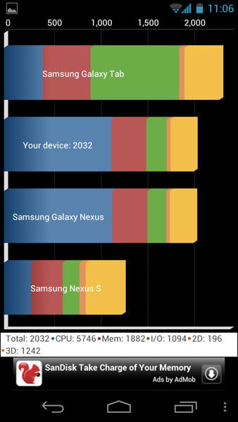 Speram ca Samsung Galaxy Nexus sa exceleze la acest capitol. Nu este chiar asa. Da, este un telefon puternic (sa nu uitam ca este echipat la fel ca Samsung Galaxy S II). Insa in mod ciudat nu este la fel de rapid precum Galaxy S II.