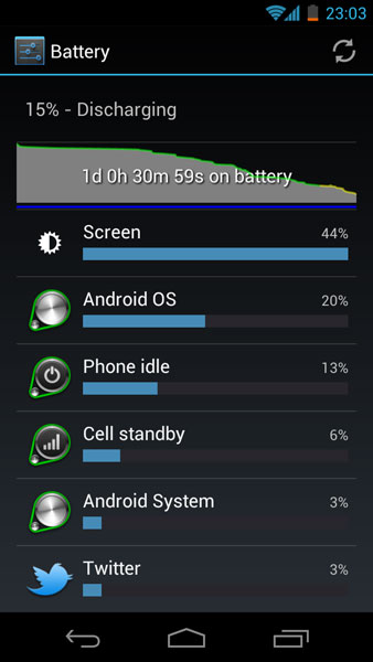 Ma bucur sa va spun ca Nexus sta foarte bine la acest capitol. Cel mai mult am obtinut 24h si 30 de minute cu o singura incarcare. In rest, media a fost pe la 18-20 de ore.