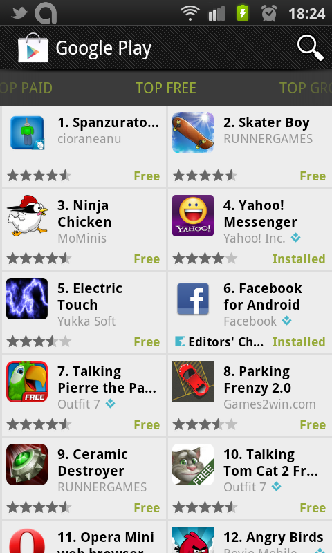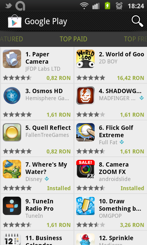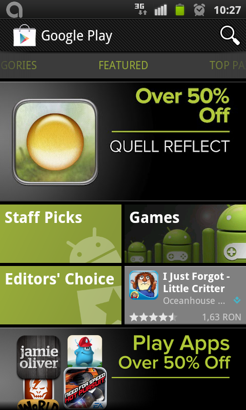 Am fost putin dezamagit de trecerea la Google Play. Speram sa vad ceva nou din punct de vedere vizual, organizatoric, orice… In schimb am gasit aceeasi interfata din Android Market, cu un logo schimbat in partea de sus.