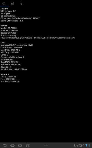 Si pentru ca mi-a fost la indemana, am facut cateva capturi si cu informatii de sistem despre Galaxy Tab 7.7. In cazul in care va intereseaza: