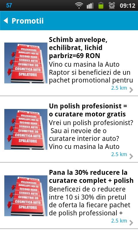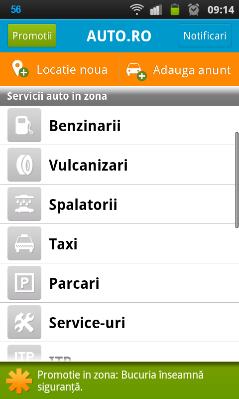 Sa o luam pas cu pas. Primul lucru pe care eu l-am observat cat am deschis noua aplicatie a fost sectiunea de promotii. Asta inseamna ca pe baza locului in care ne aflam, aplicatia ne poate sugera eventualele promotii din zona, pentru servicii cum ar fi spalatorii auto, statii ITP, schimburi de anvelope, etc.