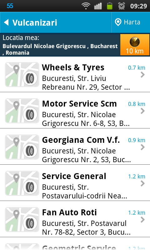 Sa trecem la ce este cu adevarat nou in aplicatie. Spuneam ca niciun sofer nu ar trebui sa plece de acasa fara asa ceva. Asta pentru ca noua aplicatie Auto.ro foloseste locatia curenta pentru a indica cele mai apropiate benzinarii, vulcanizari, spalatorii, parcari, service-uri si multe altele.