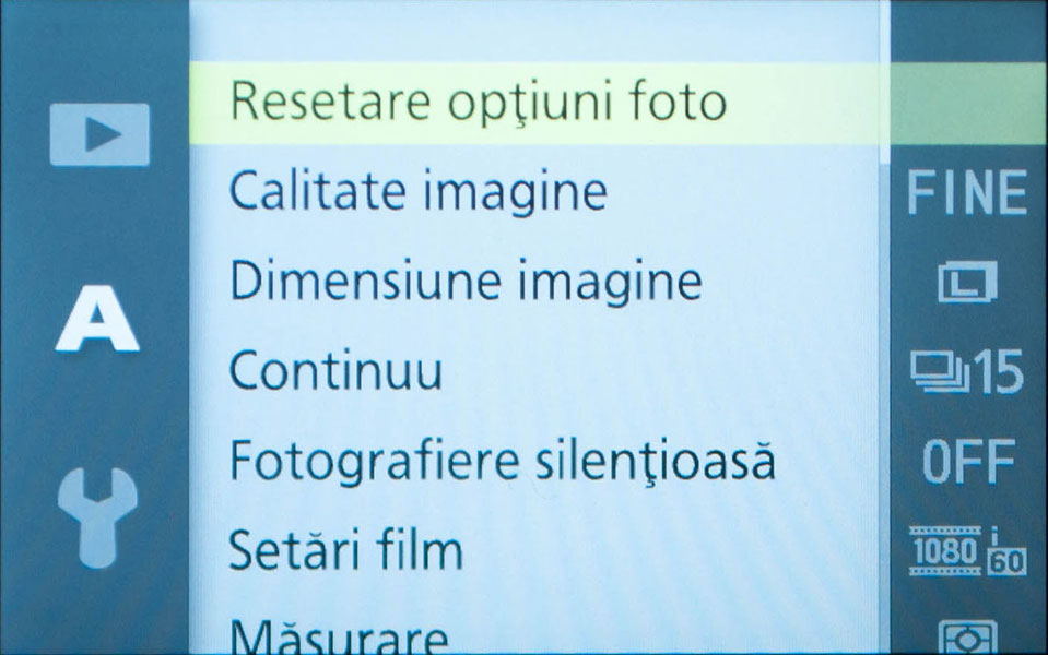 La o apasare de buton, toate setarile importante (ISO, WB, etc.) sunt afisate pe ecran si pot fi accesate rapid cu ajutorul rotitei din spate.