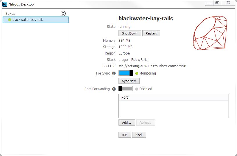 Si aici ajungem la frustrarea despre ca va spuneam mai devreme. Am vrut sa folosesc la un moment dat RubyMine impreuna cu o masina virtuala (a mea, instalata in VirtualBox) dar nu puteam pentru IDE-ul respectiv nu permitea lucrul cu fisiere remote. Se pare ca Nitrous.IO Desktop rezolva aceasta problema.